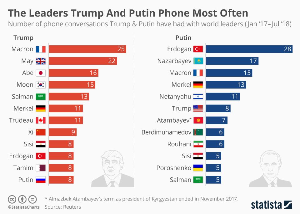 Веднага след Белград Путин се срещна с Ердоган в Москва и новината оттам не закъсня. „Нашата съвместна битка срещу терористичните групи в сирийската провинция Идлиб (разбирай, кюрдите – б.а.) ще продължи“, обяви турският президент Реджеп Тайип Ердоган на съвместната им пресконференция. След още няколко изявления за съвместни операции в Сирия, където общият им приятел Башар Асад продължава да управлява, Путин се обърна към Ердоган с нова покана да се видят в Москва, за да продължат своята станала вече редовна практика на срещи, консултации и обмяна на мнения. Факт, който се потвърждава и от инфографиката на Statista с кой лидер Путин най-често е разговарял по телефона.