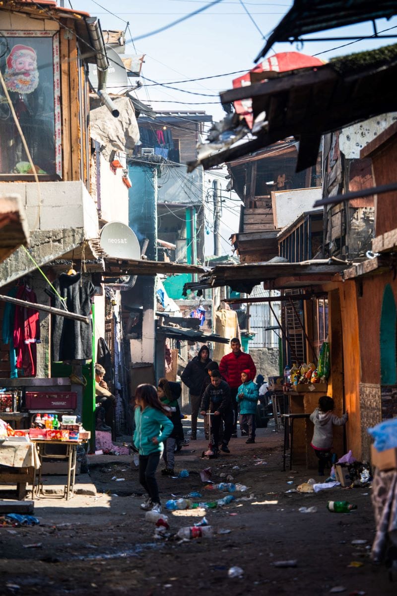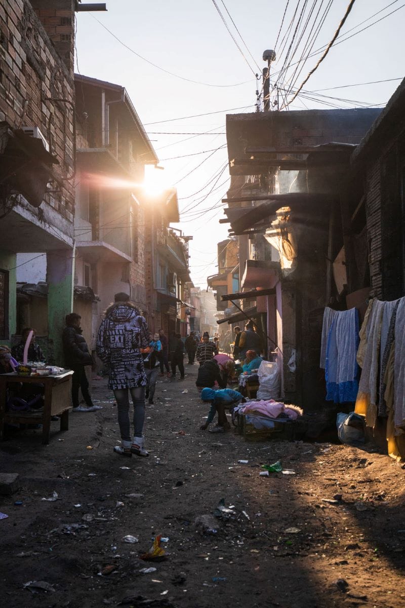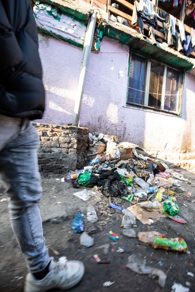 Децата около нас са вече над 15 и ни следват с шумен интерес. Тук-там се спираме и се снимаме, но много възрастни ни гледат особено подозрително. Стигаме до крайната източна част на квартала, където отчаянието ми бележи връхната си точка. Последната улица ни отвежда до голямо сметище, в което сред боклуците разпознавам бебе в ръцете на майка. С нея се поглеждаме за кратък миг. Дори не мога да асимилирам сцената, на която съм свидетел. Вдигам камерата, снимам.
