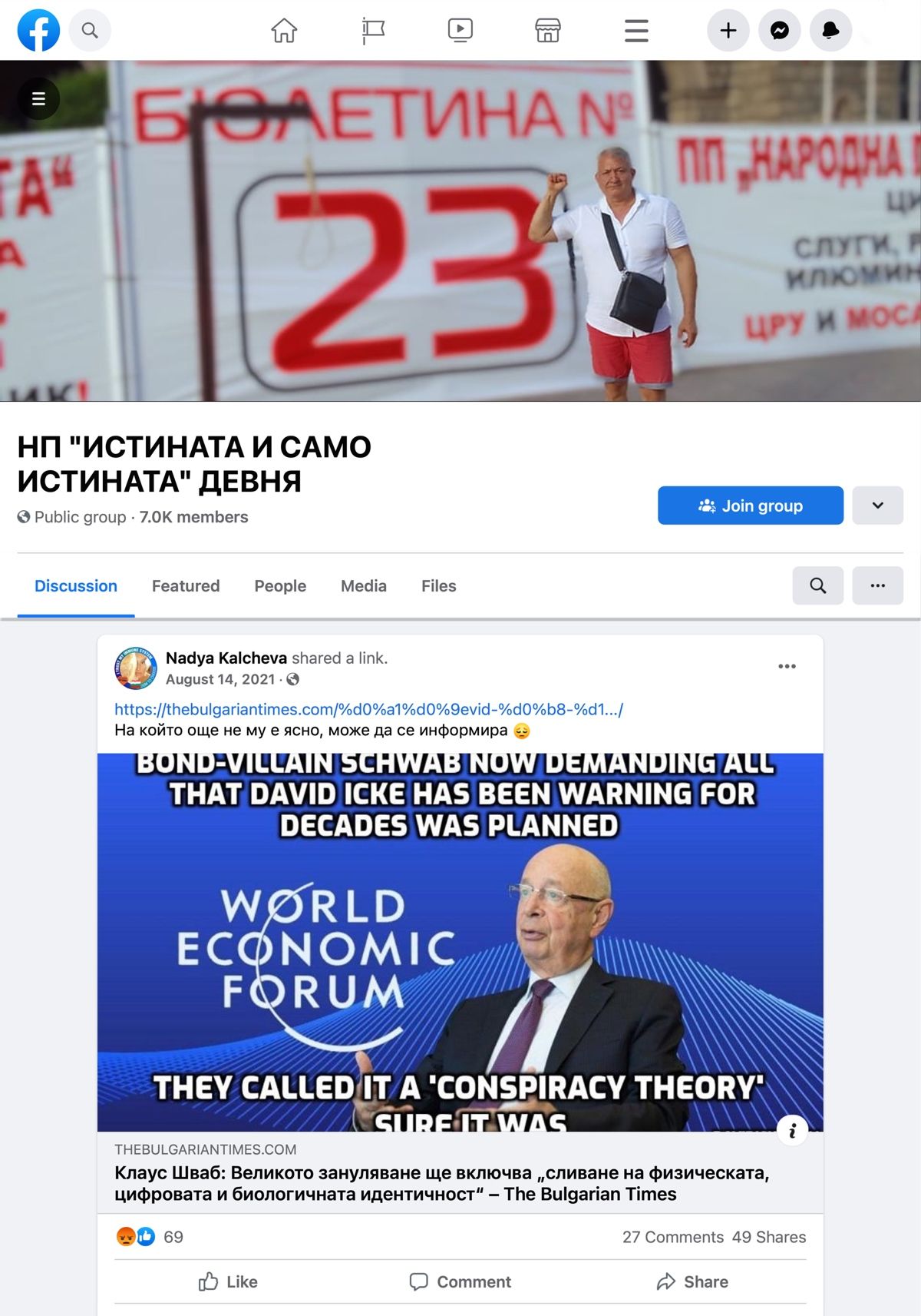 Зад иначе добрите намерения обаче мнозина виждат дяволски заговор, заплашващ да подчини световното население в Оруелова антиутопия. Отговорът на интернет е безпощаден. Вместо да насочи вниманието на публиката към борбата с климатичните промени, визията на СИФ за бъдещето дава тласък на всеобхватна конспиративна теория, която прониква в най-тъмните ъгли на дигиталното пространство. Нейни главни герои са глобални лидери, милиардери, религиозни фигури и тайни общества. Конспирацията не подминава и България, където слуховете за т.нар. зануляване оставят своя отпечатък върху ваксинационната кампания, хаотичния политически диалог и предизборната кампания за парламентарния вот в началото на октомври.