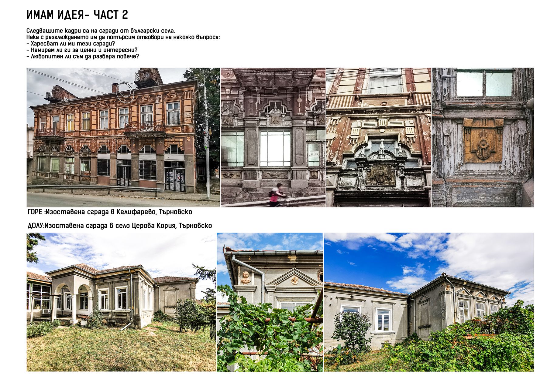 Изоставените и неизползваните сгради са проблем – проблем и на България, и на света. Той няма да се реши днес. През него обаче може да се говори за демография, за екология, за строителство, за културно наследство, за общество, образование и култура, за градска среда и урбанистични процеси, за климатичната криза, бетон и преизползване на материали, за паметта и миналото, за бъдещето (на архитектурата) и изобщо.