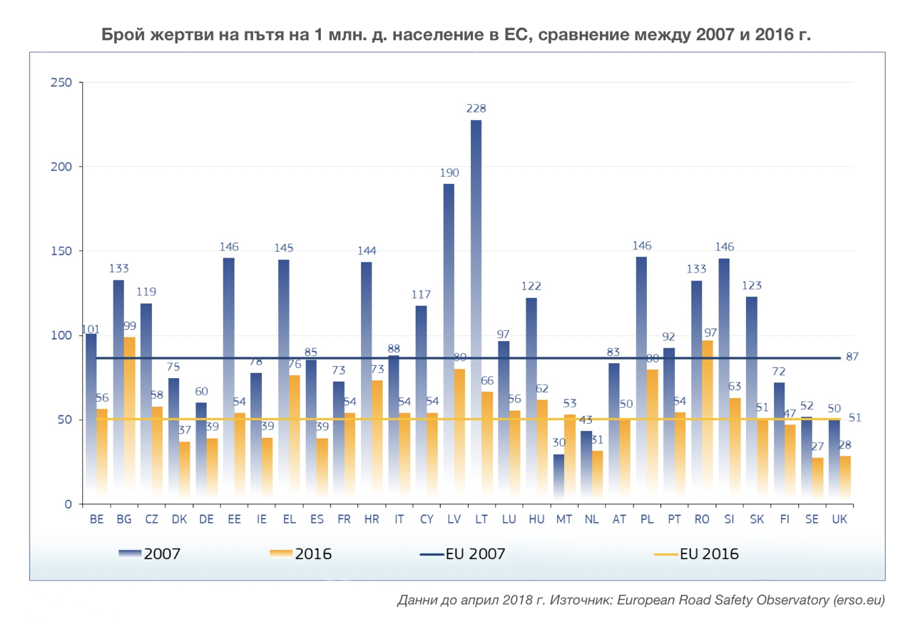 Вероятно на всеки от читателите е направило впечатление, че в медийното пространство често се дискутира темата за високите нива на пътно-транспортни произшествия (ПТП) в България. Статистиката на Европейската комисия показва ясно, че през последното десетилетие страната ни е сред държавите с най-високи нива на загинали в пътни инциденти в ЕС – близо два пъти по-високо от средното ниво за Съюза, като жертвите на 1 млн. души население са три пъти повече в сравнение с държави като Великобритания, Дания и Швейцария. Почти ежедневно отбелязваме поредната жертва на пътна катастрофа в страната, а същевременно не се виждат целенасочени, категорични и ефективни политики и действия от страна на властите за подобряване на ситуацията.
