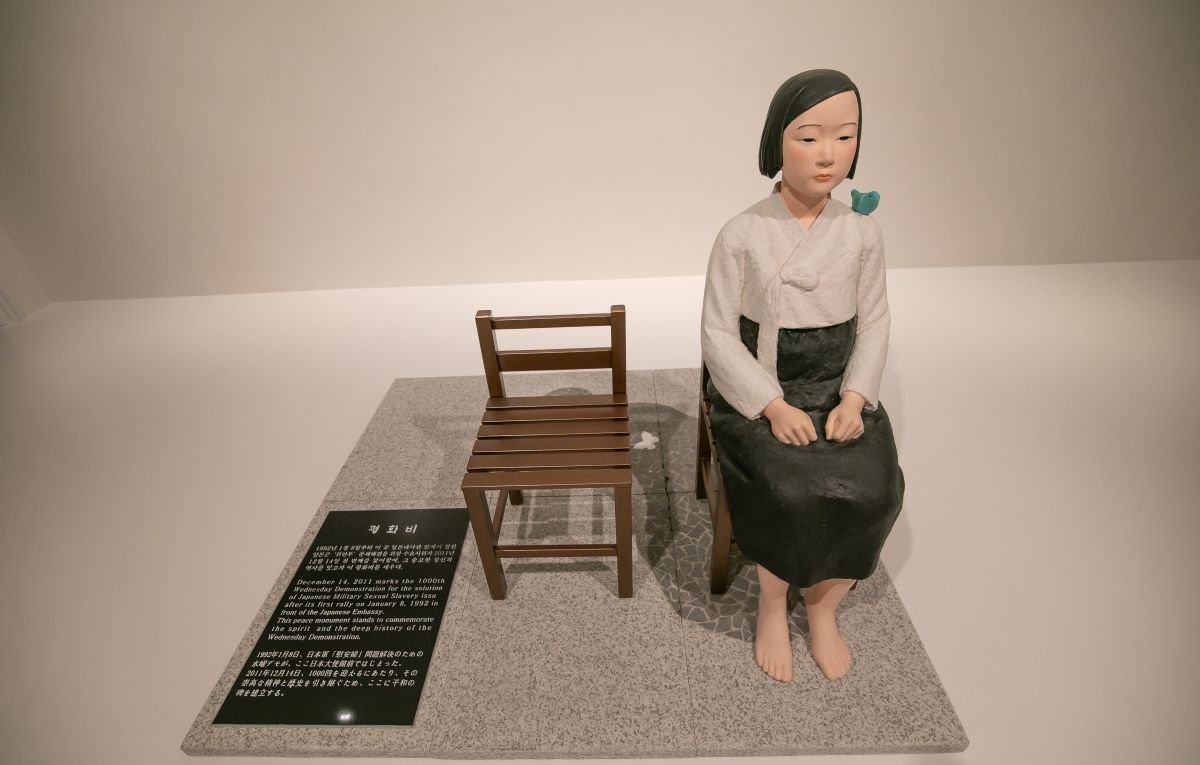 Едно от най-въздействащите места в Музея на забраненото изкуство е и едно от най-тихите, пред многократно цензурираната „Статуя на мира“ на Ким Сеокюн и Ким Юнсан. Два стола – на единия седи примерно девойче с миловидно лице, на другия си поканен да седнеш ти. Девойчето е обобщение на сексуалните робини на японската армия по време на Втората световна война. Частите му са символи: надигнатите петички (нестабилността), птичето на рамото (мирът и освобождението), свитите юмруци (нежеланието на оцелелите жертви – корейки, китайки, филипинки – да мълчат и да бъдат отпращани с половинчати извинения)...