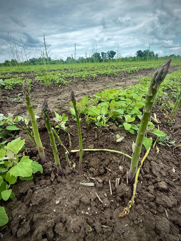 Наскоро, прибирайки поредната поръчка за мен и приятели, помолих Виктор да отидем до нивата, която, наред с още други земи, е семейна собственост от времето на прадядо му и където аспержовата територия се разраства всяка година. Към края на сезона „свещите“, както Виктор нарича надземната част на растението, са по-нарядко и са по-тънки, а честотата на брането е разредена. Тоест май хванах последния влак тази година, за да видя на живо плодовете на труда му.